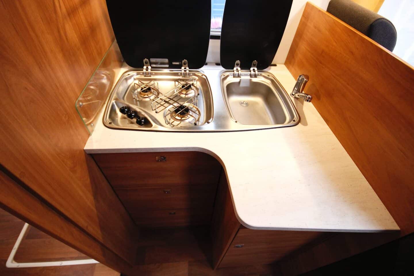 L-kujuline köök on varustatud pliidi, külmiku ja sügavkülmasektsiooniga – kõik vajalik toidu valmistamiseks teel olles. Avar söögilaud sobib nii eine nautimiseks kui ka hubaseks õhtuseks ajaveetmiseks. Kassettkardinad ja sääsevõrguuks lisavad mugavust, võimaldades nautida vaateid ilma tülikate putukateta.