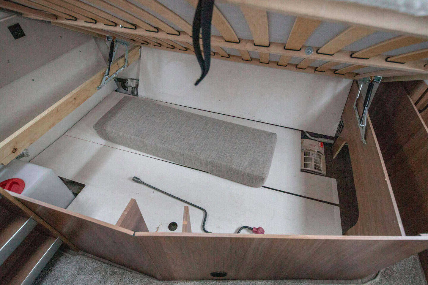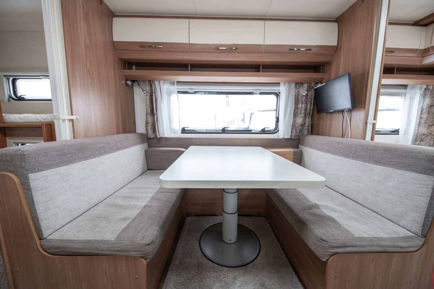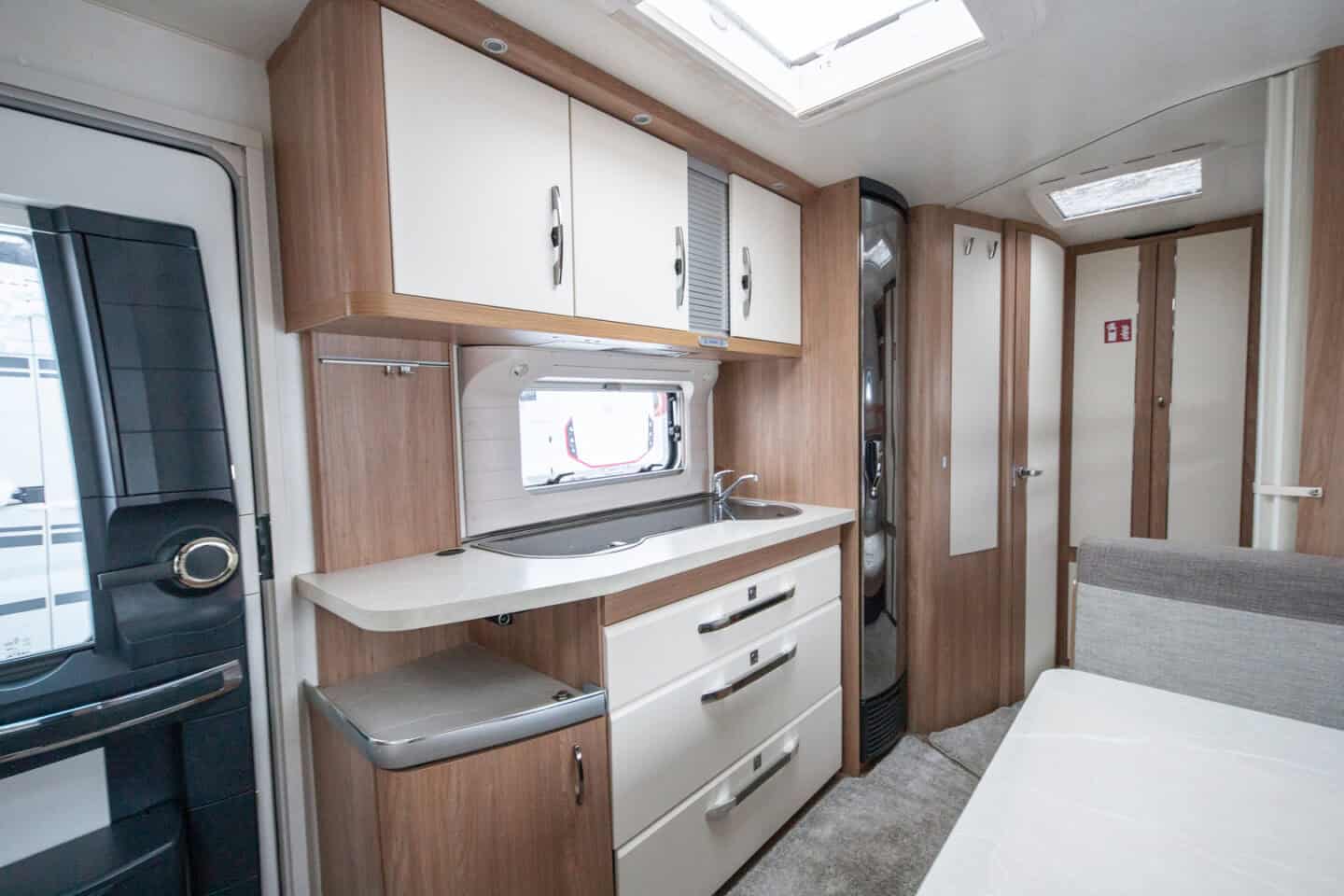 Eraldi dušinurk, kassett-tualett ja valamu muudavad pesemise lihtsaks ja mugavaks. See suurendab reisimugavust eriti pikematel sõitudel, kus oma pesuruum on väärtuslik osa terviklahendusest.