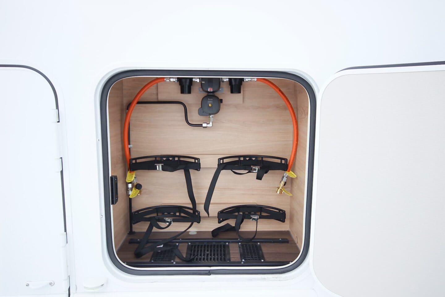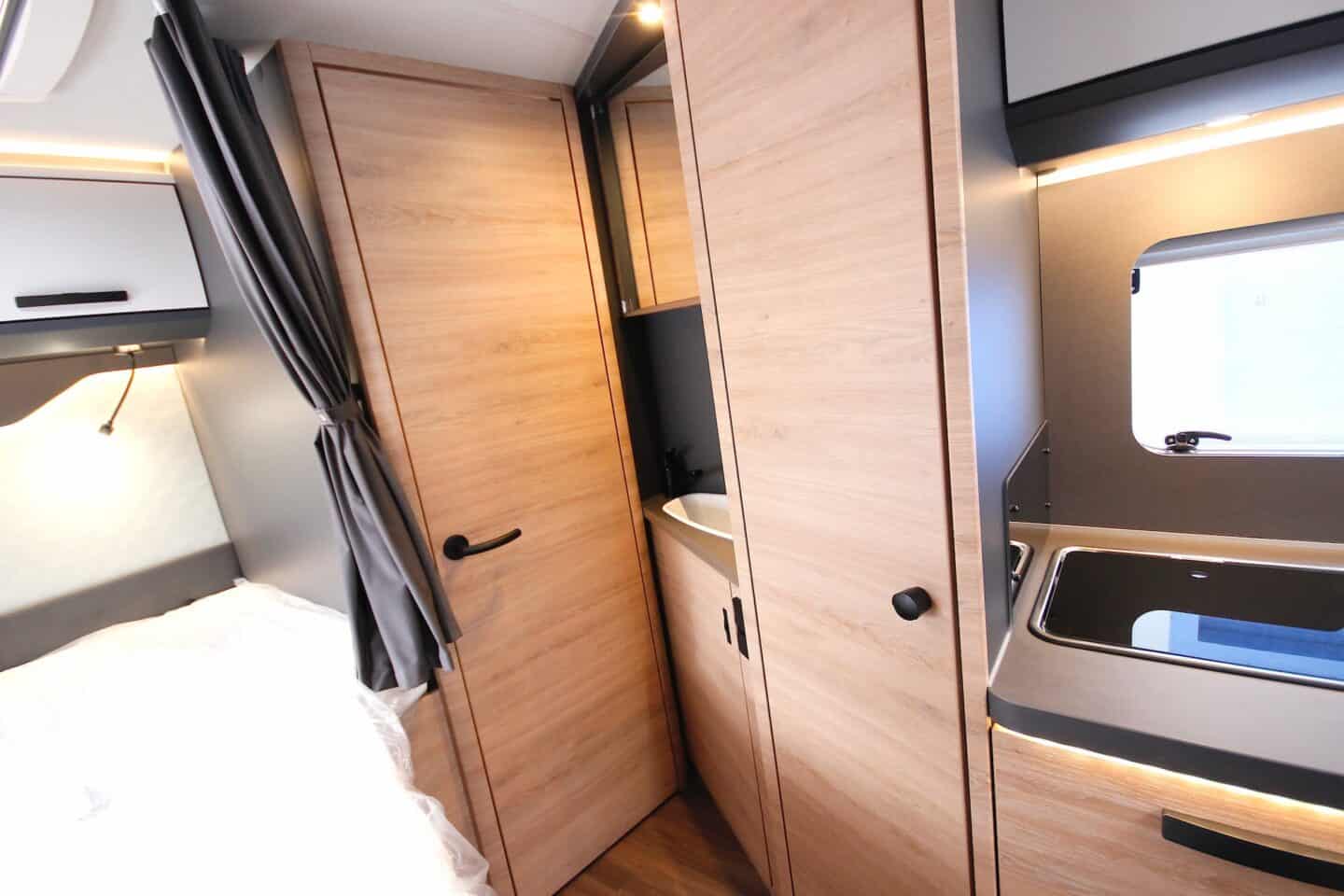 Elamuosa uks KNAUS EXKLUSIVE: integreeritud Coming-Home valgus aknas, mitmepunktiline lukustus, peidetud hinged, topelttihend, nahkkattega detailid, elektriline kesklukk, integreeritud vihmavarjutasku