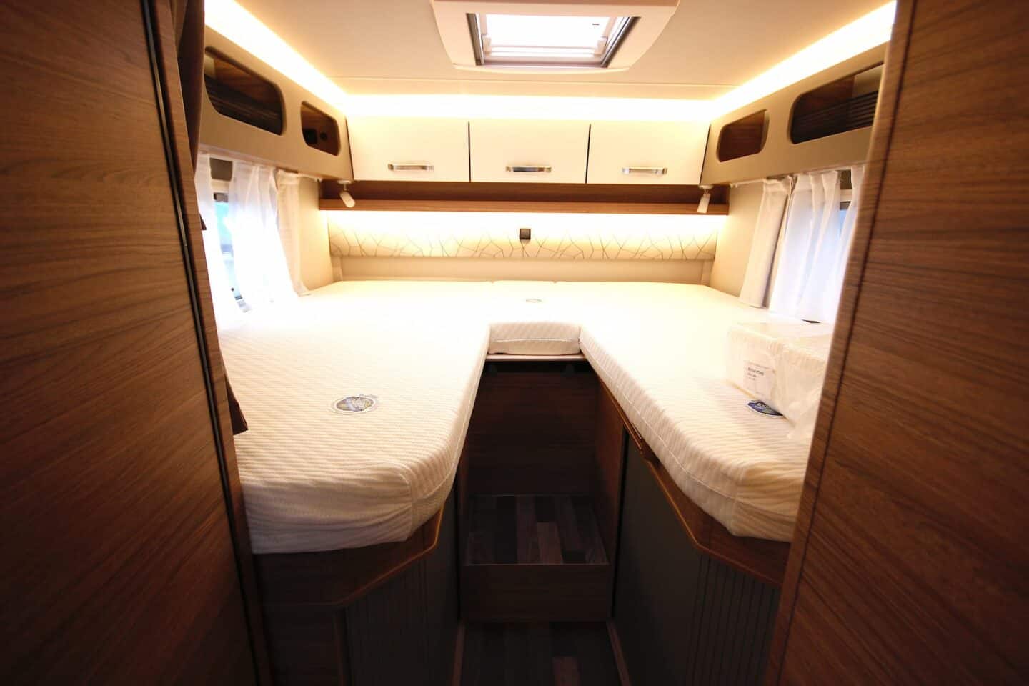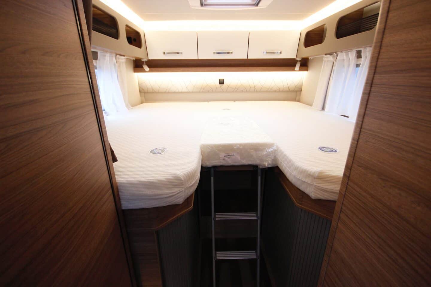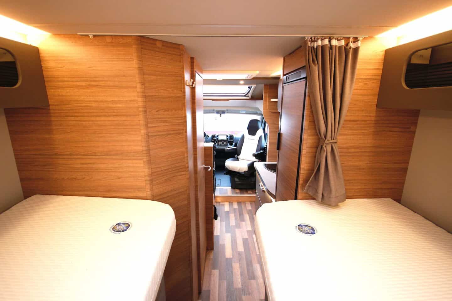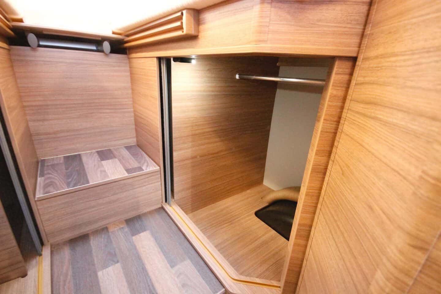 Kolme põletiga pliit, 142-liitrine külmik ning kokkupandav lisatasapind teevad köögi praktiliseks ka pikematel reisidel. LED-valgustusega meeleoluvalgustus lisab hubasust.