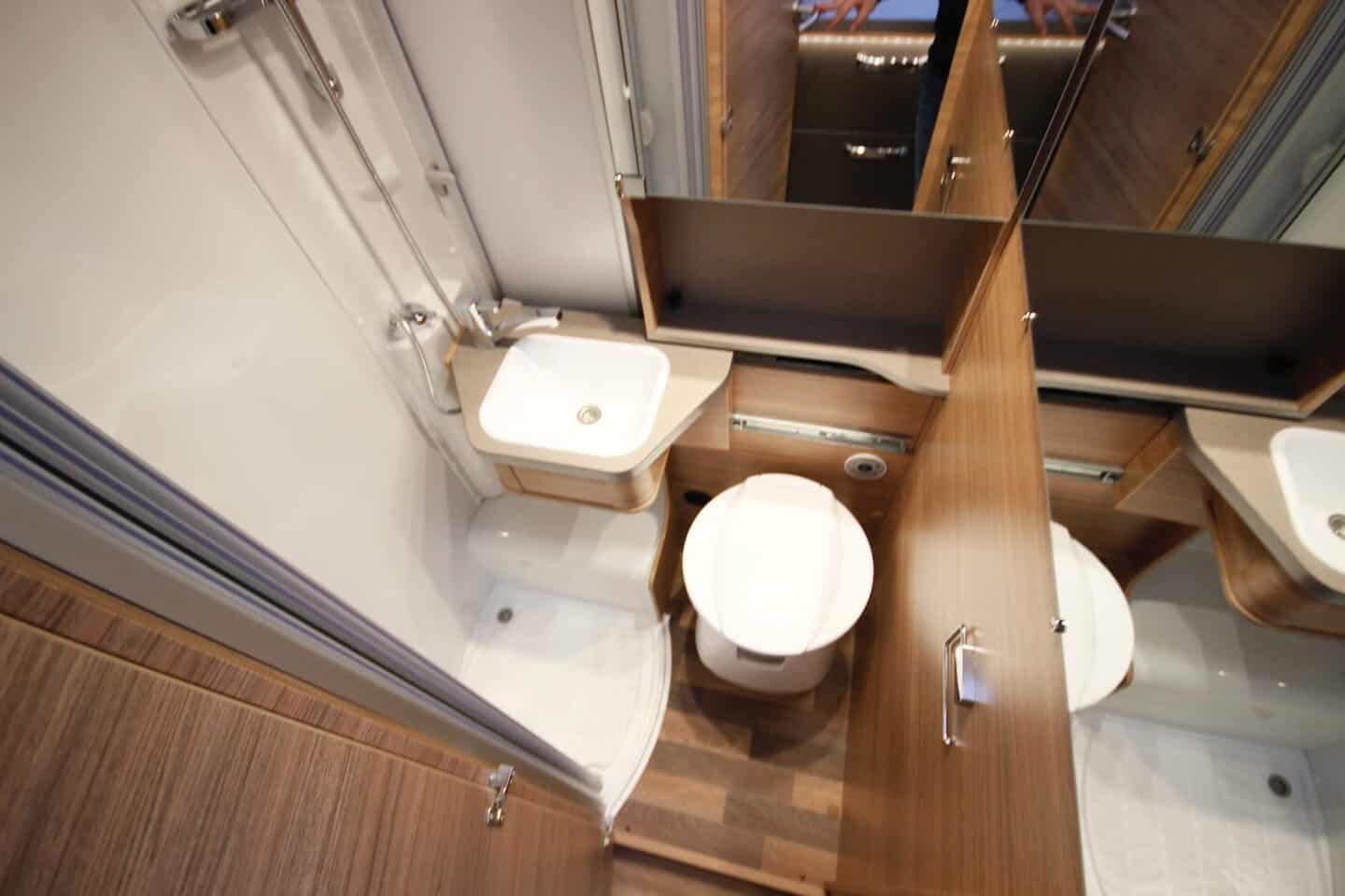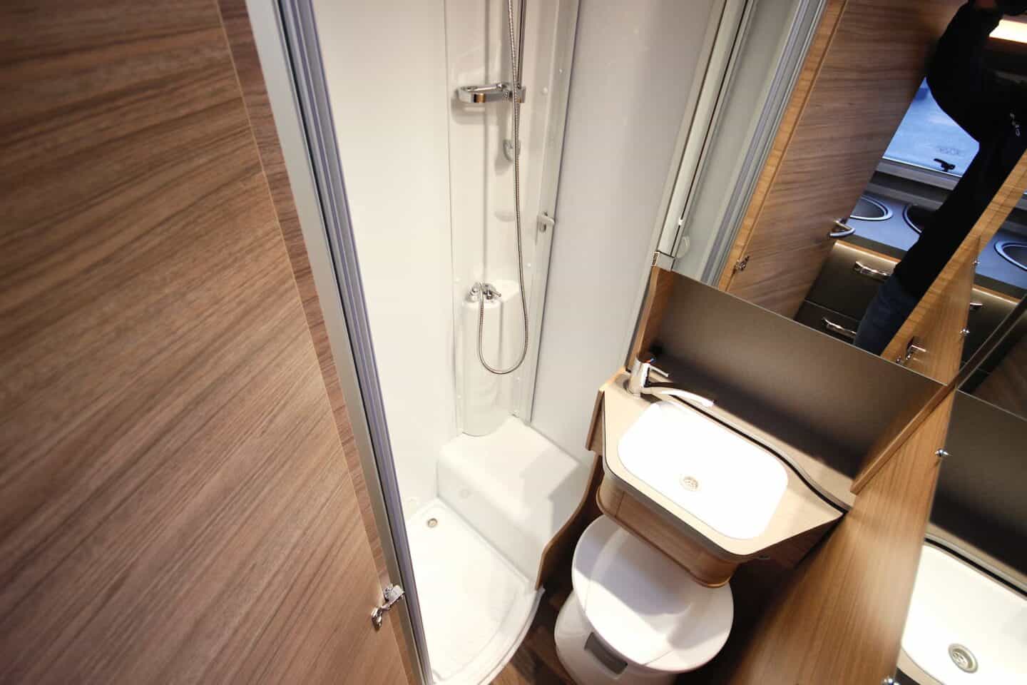 Eraldi duširuum, WC ja TRUMA Combi 6 küttesüsteem elektrilise küttekehaga võimaldavad mugavat elu aastaringselt.