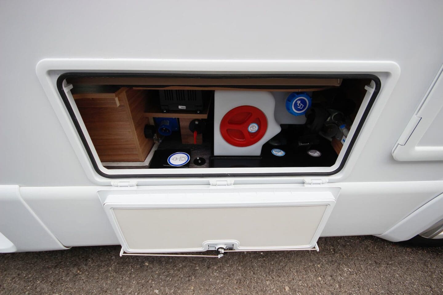 WEINSBERG Easy-Travel-Box väljast ligipääsuga: veepaagi täitmine / veekraan ja 230 V pistik